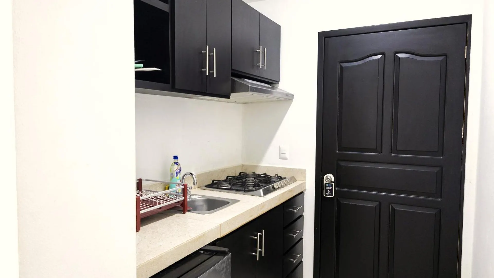 Een fatsoenlijke locatie voor het ontdekken van Tulum Pueblo. Stijlvolle kamers met een kitchenette werden aan ons aangeboden.